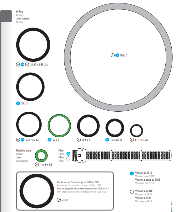 Jeu de joints pour pompe et récipient Pièce n° 2/13/15/17/7/5/8/11/5/10 sur vue éclatée des pulvérisateurs Flox 10 / Iris 15 / Senior 20   Le jeu de joints se compose de    Tout Pour Les Nuisibles 2821